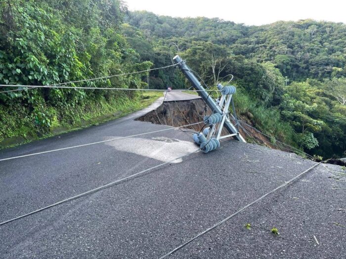 Las imágenes que compartió la Policía de Tránsito permiten ver la caída de una parte de la carretera y de postes de luz.